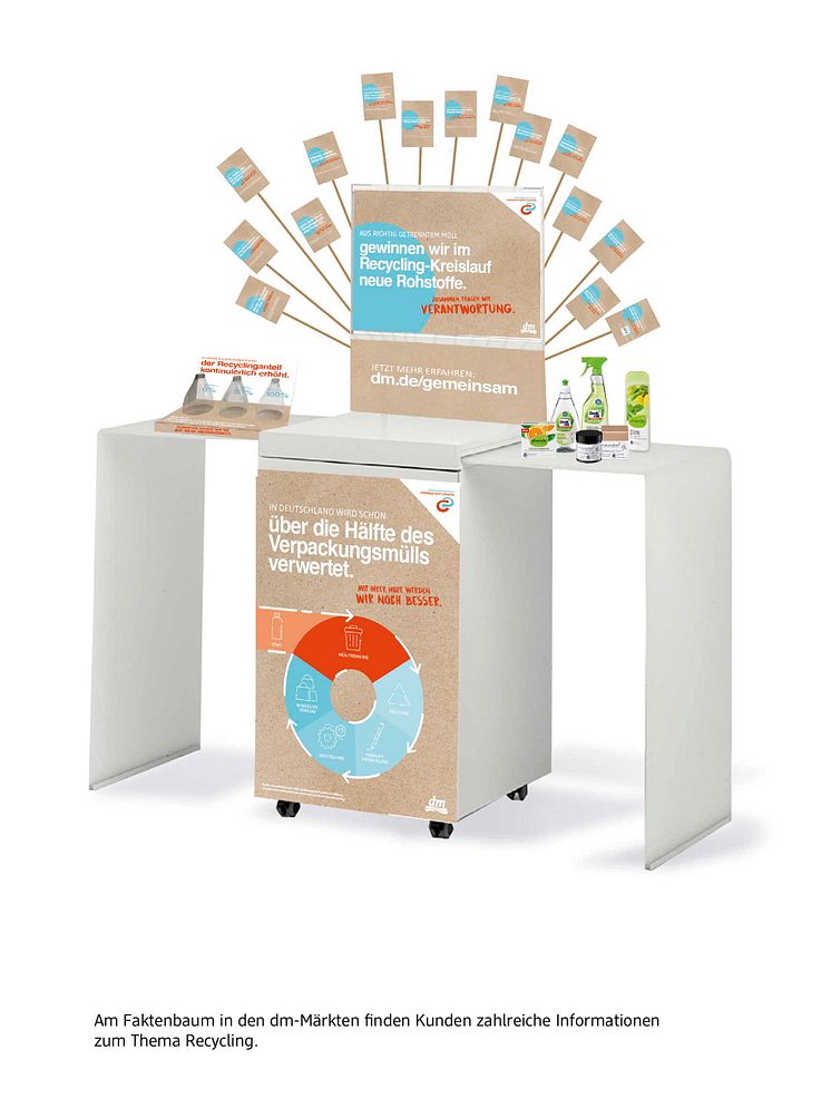 Informationsmaterialien für Kunden bei dm zur Kampagne Kreislaufwirtschaft