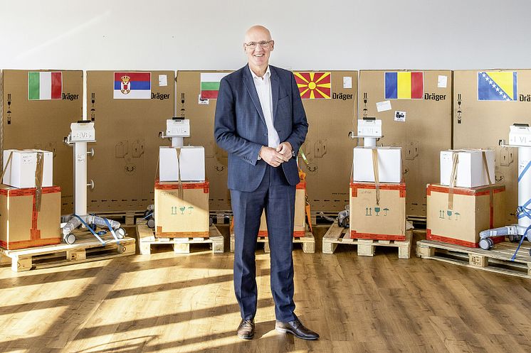 dm leistet einen kleinen Beitrag zur medizinischen Versorgung: Mag. Martin Engelmann, Vorsitzender der dm Geschäftsführung Österreich und sein Team transportieren aktuell 15 Beatmungsgeräte in unsere Partnerländer wie zum Beispiel Italien oder Bosnien, um Krankenhäuser bei der Versorgung von Corona-Patienten zu unterstützen.