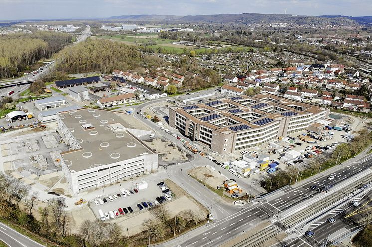 • Luftbild Neubau dm-Zentrale Karlsruhe Untermühlsiedlung