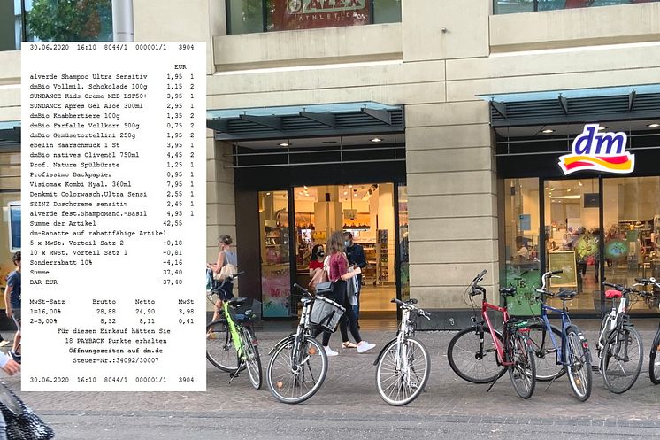 • dm gibt Mehrwertsteuersenkung vollumfänglich und artikelgenau an die Kunden weiter.