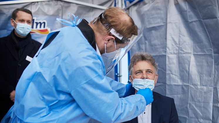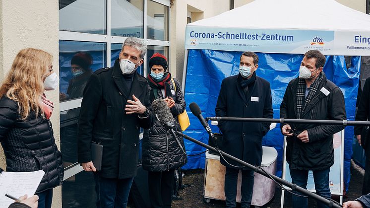„Wir brauchen ein leistungsfähiges, niedrigschwelliges Schnelltestnetz. Da leistet dm heute eine echte Pionierarbeit, weil wir von der inzidenzabhängigen Öffnung oder Schließung von Angeboten weg müssen, zu der Voraussetzung, dass die Menschen Schnelltestergebnisse mitbringen, die nicht allzu alt sein dürfen, um dann Institution, wie Kultureinrichtungen oder Kinos zu besuchen. Das betrifft in Zukunft wahrscheinlich auch Schulen und Kindertagesstätten. Das kann auch für den Einzelhandel eine gute Lösung sein", erklärt Oberbürgermeister Frank Mentrup.