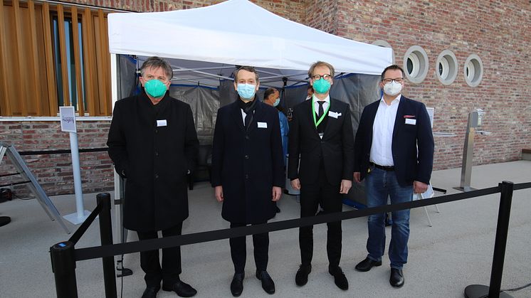 Startschuss für Baden in Karlsruhe: Karlsruher Oberbürgermeister Frank Mentrup und dm-Chef Christoph Werner eröffnen dm Corona Schnelltest-Zentrum